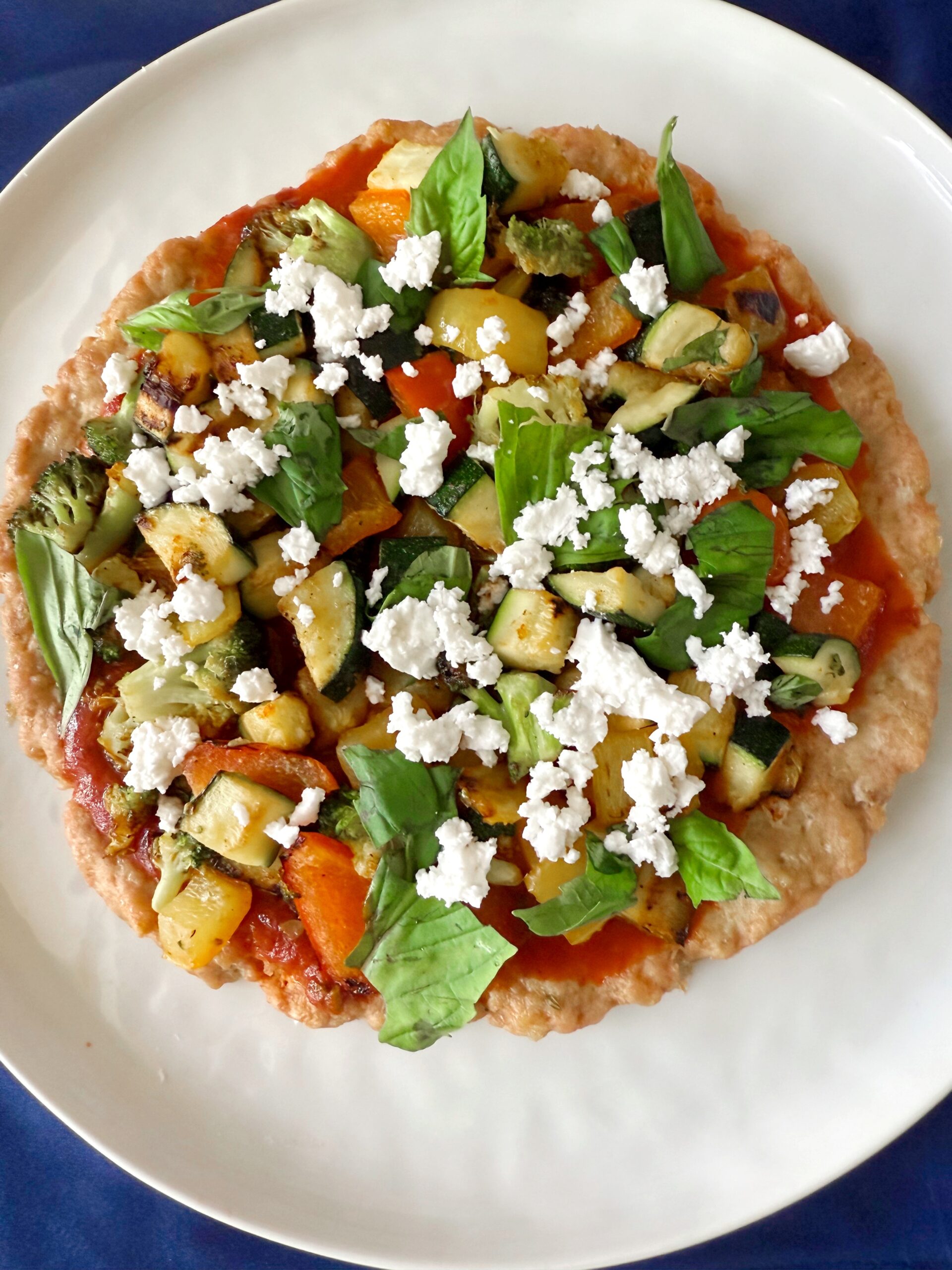 Preheat oven to 375°F. Line a baking sheet with parchment. Combine hen and spices, then flatten right into a 12–14 inch disc (about ¾ – 1 inch thick – mainly a large burger patty). Bake 25 minutes till inside temp hits 165°F. Add marinara and veggies, bake 5 extra minutes, and end with contemporary basil and feta.